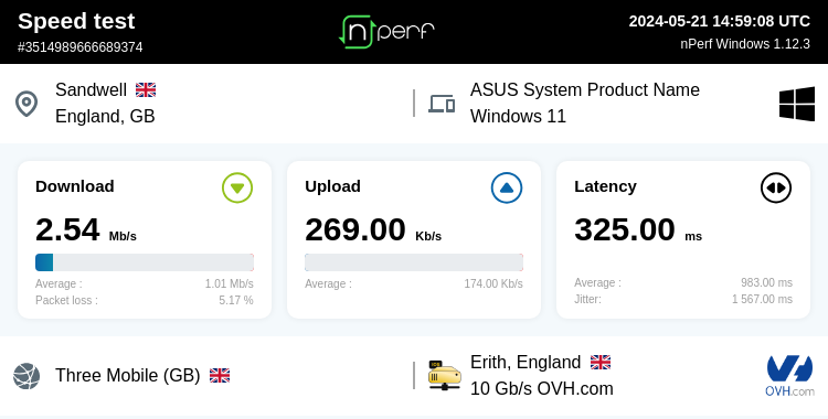The test for 5G NR is capped limit to 120Meg down but uncapped for upload. The same as Aqueduct 5G as it seem Three put capped on 120Meg as a throttling speed. How disappointed.