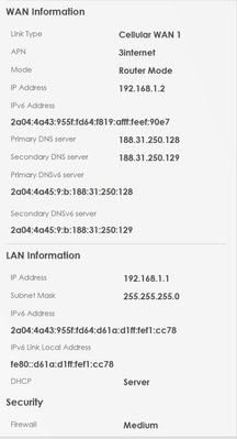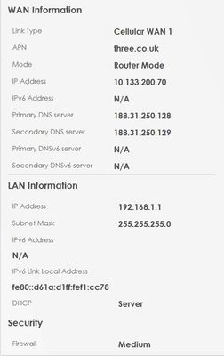 I've set my APN to three.co.uk, IP type IPv4. But still seems to be having issues. It still seems to be dishing out IPv6 addresses to the LAN is that right?