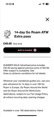This should be available till 30/09/2025 subject to availability. you should see the reduced price when you're purchasing on the Three app or your online account. You can pre-purchase the bundle of passes, and it won't activate till you make usage in a roaming destination. 🙂
